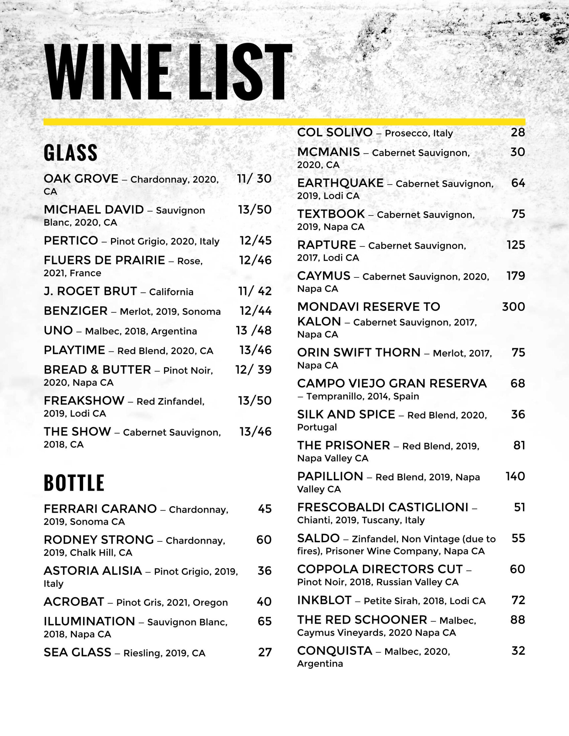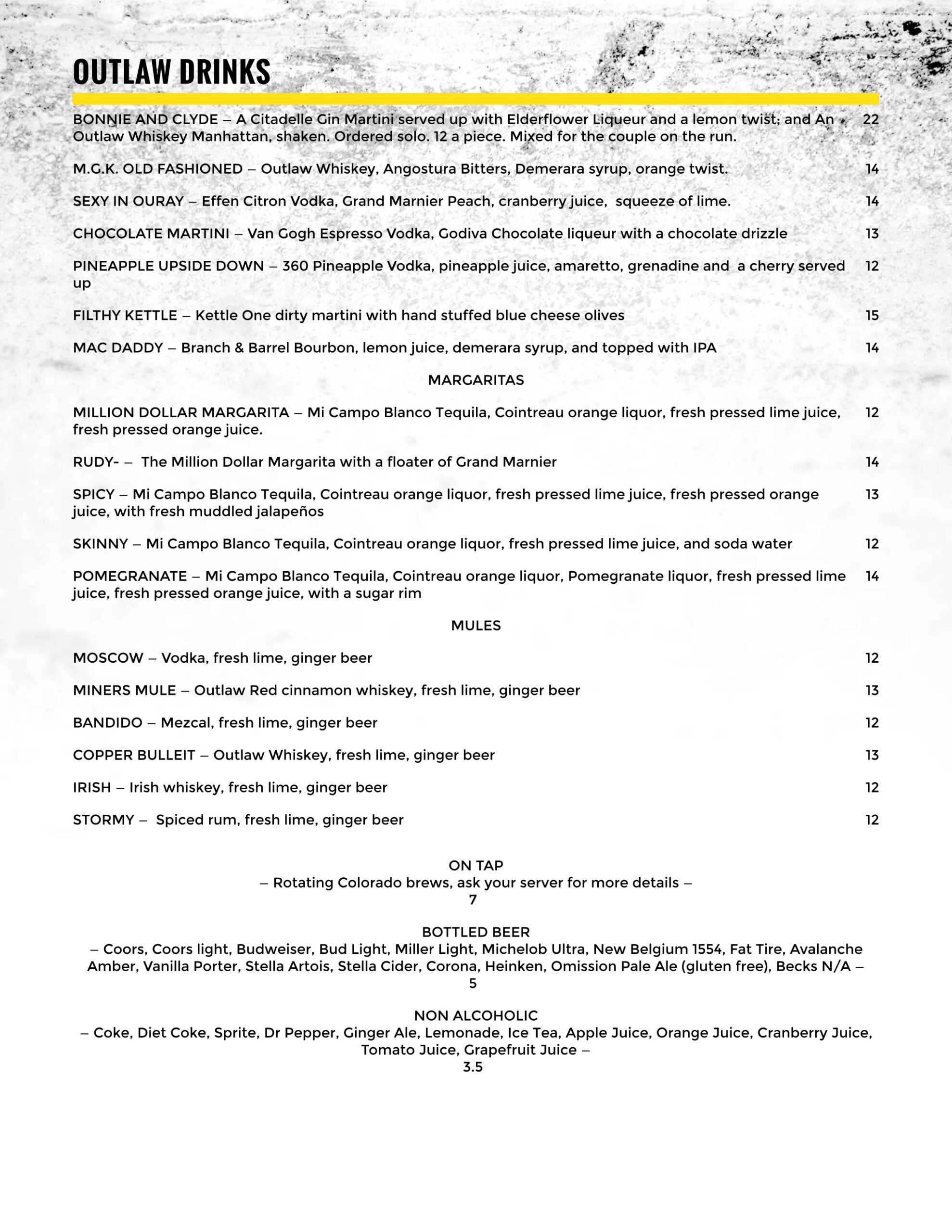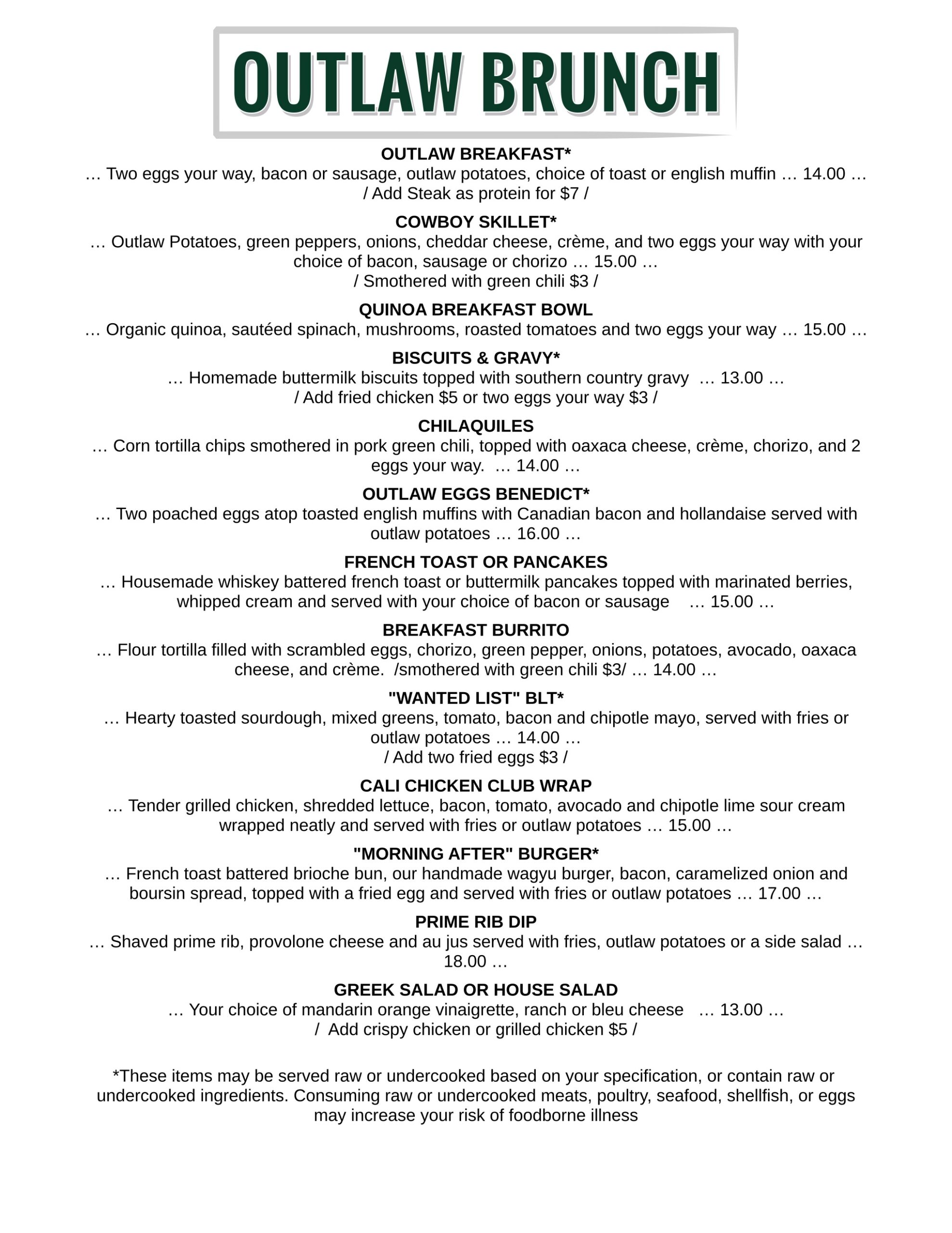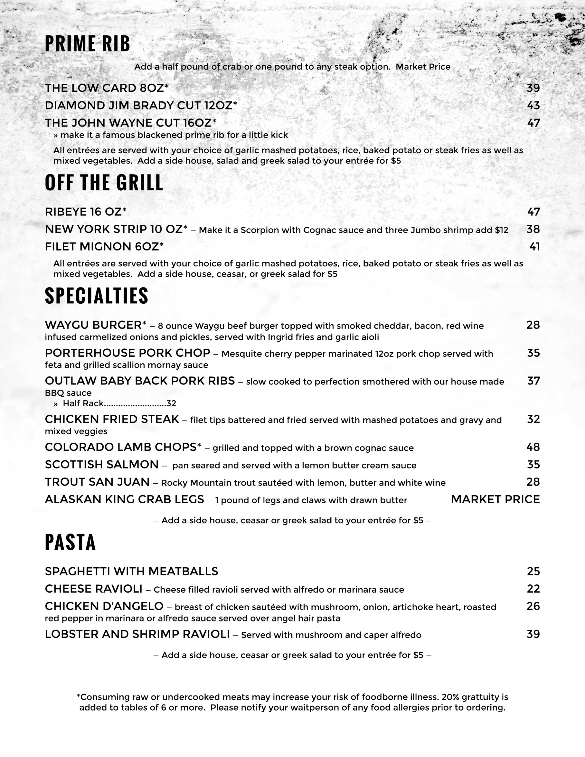 • Appetizers / Salads • Prime Rib / Off the Grill / Specialties / Pasta • Brunch • Wine • Drinks BACK BRUNCH Wednesday to Sunday – 9am – 2pm DINNER Monday to Sunday – 5pm to Close Go Back